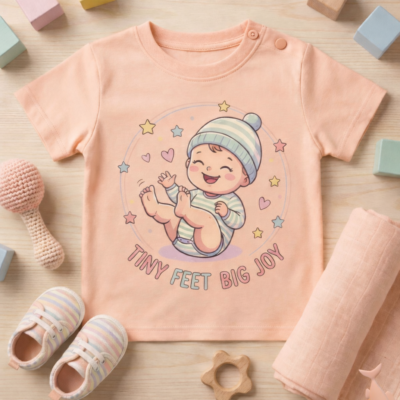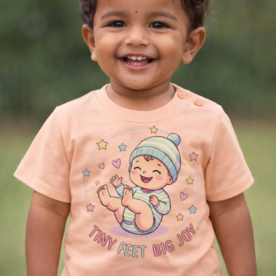Pure Cotton Half Sleeves Tiny Feet Big Joy T-Shirt – Apricot