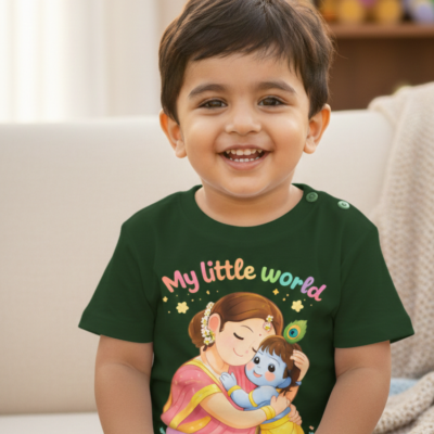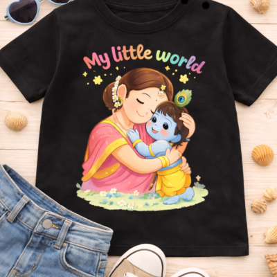 Pure Cotton Half Sleeves My Little World T-Shirt – Black