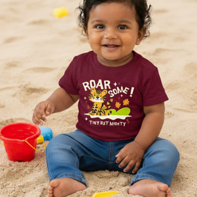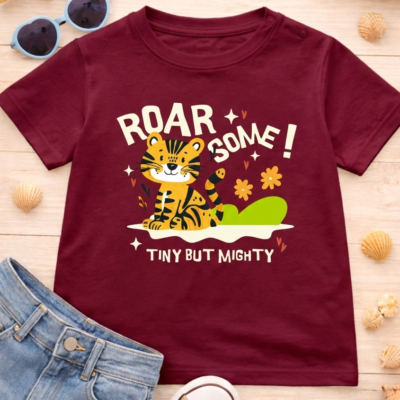 Pure Cotton Half Sleeves Roarsome T-Shirt – Maroon
