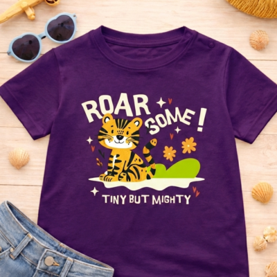 Pure Cotton Half Sleeves Roarsome T-Shirt – Purple