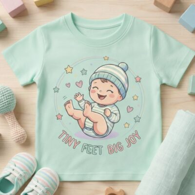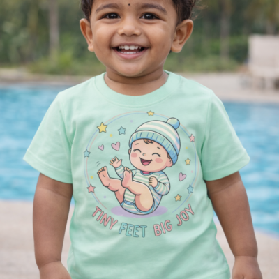 Pure Cotton Half Sleeves Tiny Feet Big Joy T-Shirt – pastel green