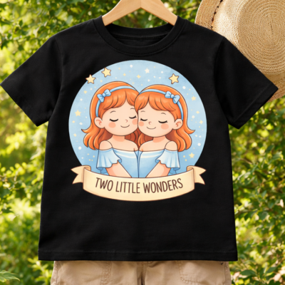 Pure Cotton Half Sleeves Twin Sisters T-Shirt – Black