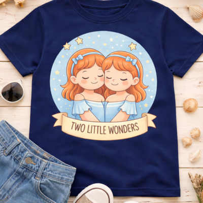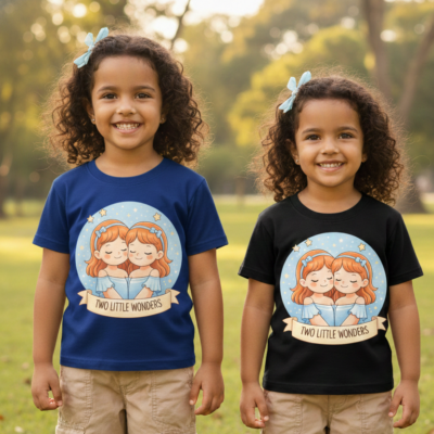 Pure Cotton Half Sleeves Twin Sisters T-Shirt – Blue